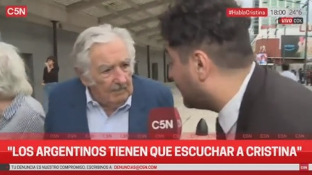 Por si esto fuese poco, Mujica se suma a una actividad de "respaldo" Cristina Kirchner, que después de que el mundo entero viera como un ministro de los Kirchner lanzaba sacos de dinero a un convento o como diversos empresarios confesaron pagar coimas para obtener contratos de obra pública, denuncia hoy un "lawfare" (expresión usada por la izquierda para referirse a la utilización abusiva o ilegal de las instancias judiciales) en su contra. Además, Mujica tiene el descaro de declarar que es "una vieja maravillosa", y aunque se cuidó asegurando que él sólo venia en "solidaridad" y que "no decidiría un carajo", deslizó críticas sobre la justicia: "La Justicia se desvía, está lejos de ser objetiva y uno necesita recuperar un poco de confianza en la Justicia".